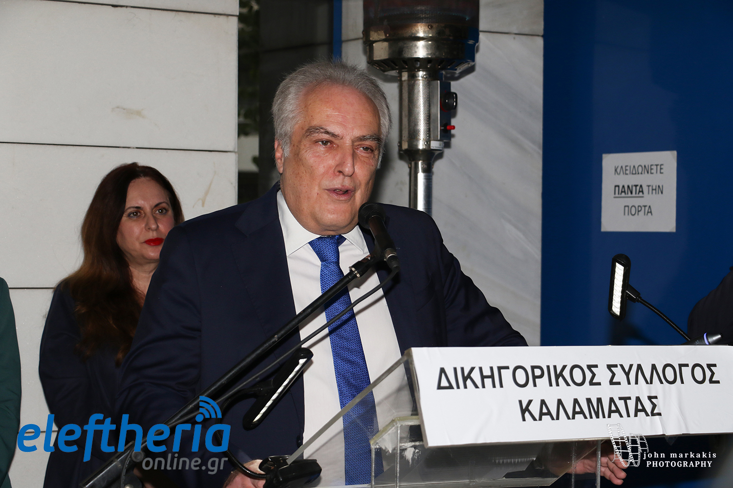 Την εκδήλωση άνοιξε με την ομιλία του ο πρόεδρος του Δικηγορικού Συλλόγου Καλαμάτας Κώστας Μαργέλης, που αντέδρασε έντονα και εξαπέλυσε επίθεση κατά της Υπουργού Όλγας Κεφαλογιάννη για την τροπολογία που αφορά τη γονική μέριμνα και επιμέλεια ανηλίκων σε περίπτωση διάστασης ή διαζυγίου των γονέων, που ψηφίστηκε στις 19 Δεκεμβρίου σε άσχετο νομοσχέδιο για την ενσωμάτωση του ΟΠΕΚΕΠΕ στην ΑΑΔΕ.
