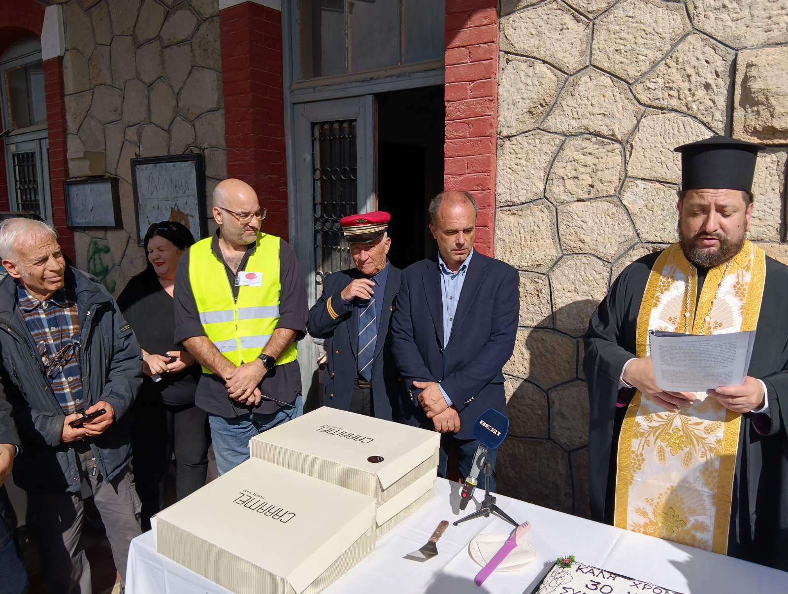 Κόβοντας την πίτα, ο πρόεδρος του Συλλόγου Ηλίας Νταίβις παρατήρησε ότι “φέτος ο Σύλλογος γιορτάζει τα 30 χρόνια από την ίδρυσή του. Τέτοιες μέρες ον Ιανουάριο του 1996, που όμως ήταν διαφορετική εποχή με τον σιδηρόδρομο σε λειτουργία”.
