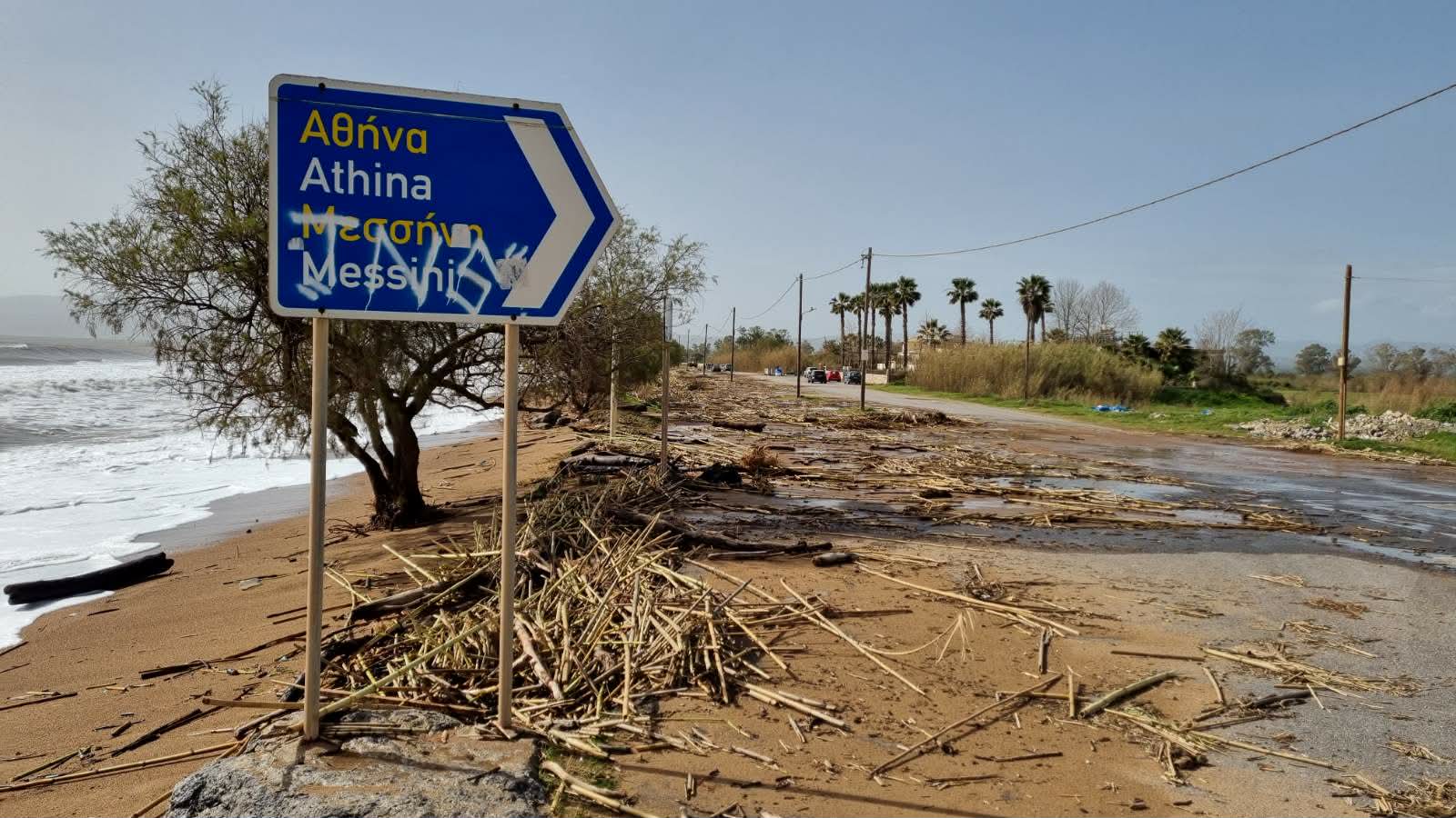 Μέχρι τον δρόμο βγήκε η θάλασσα στον Κορδία μετά τους ισχυρούς ανέμους και τη θαλασσοταραχή που σημειώθηκαν τα ξημερώματα στην ευρύτερη περιοχή της Καλαμάτας.