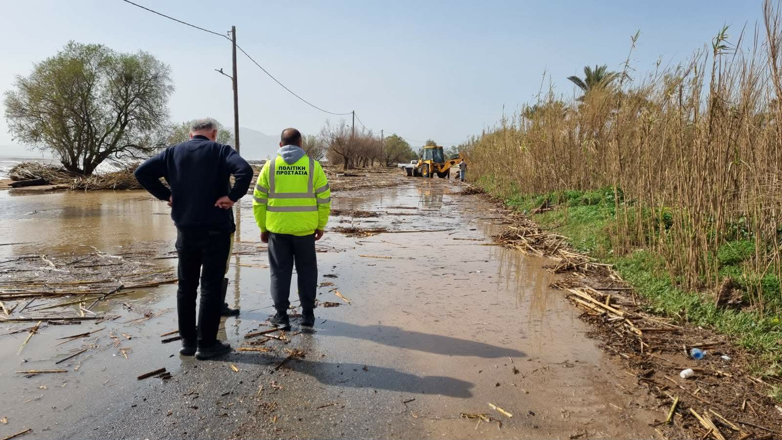 Από τα νερά και τα διάφορα φερτά υλικά διεκόπη για λίγη ώρα η κυκλοφορία στον παραλιακό δρόμο του Κορδία.