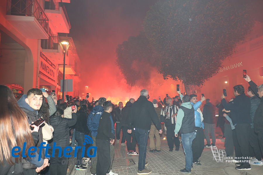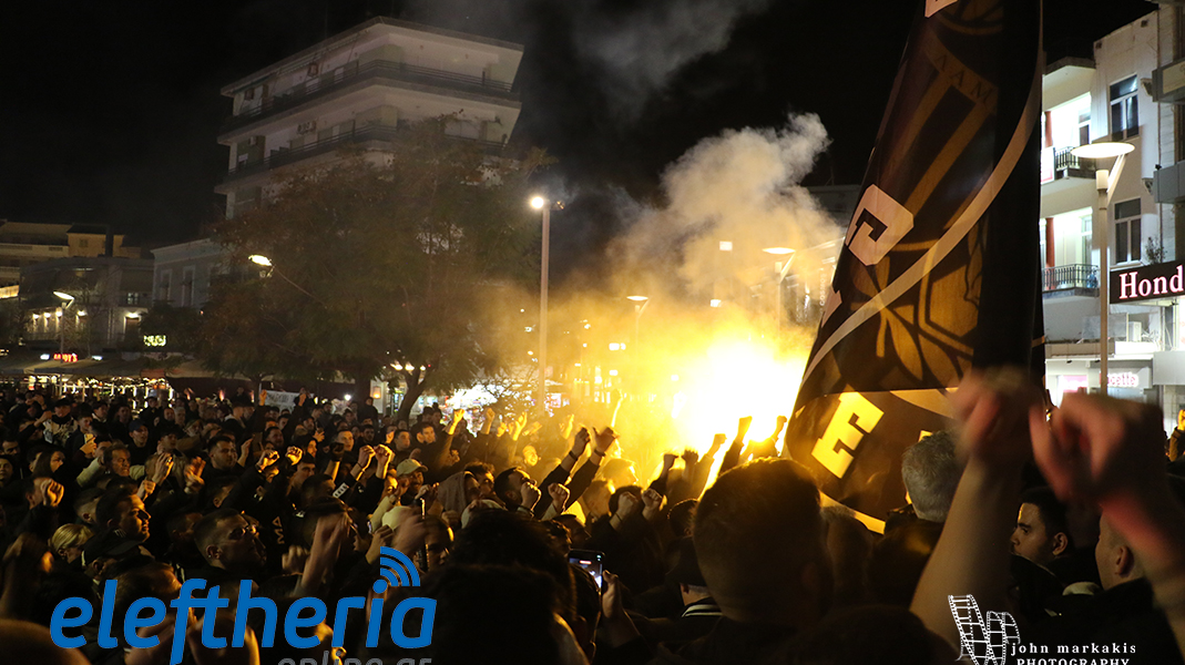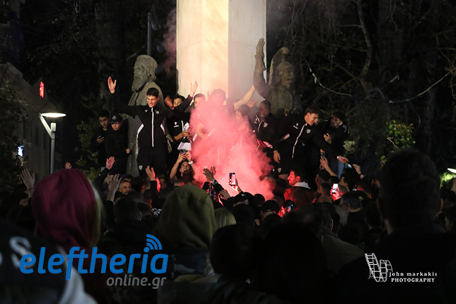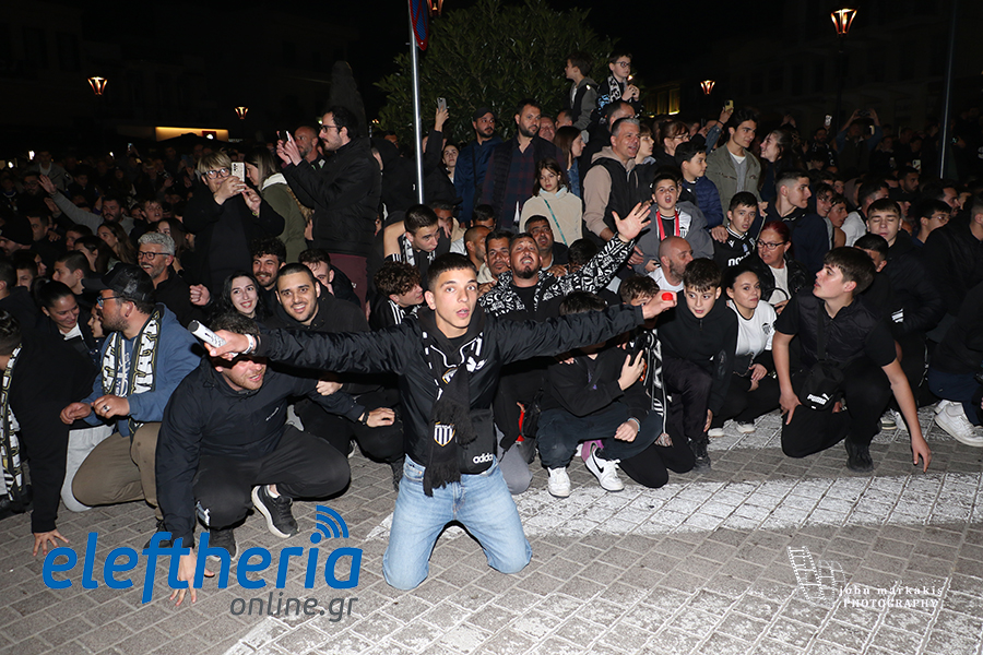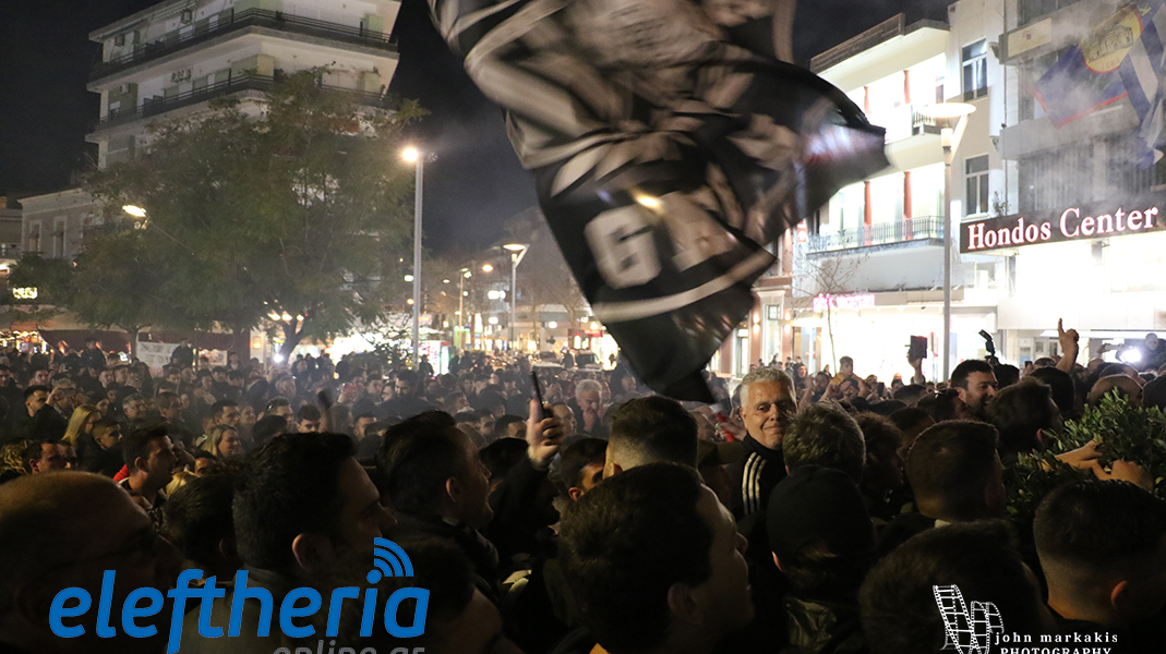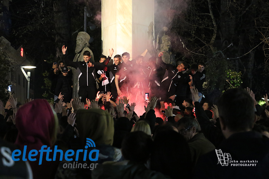 Χιλιάδες φίλαθλοι κάθε ηλικίας κατέκλυσαν το βράδυ του Σαββάτου την πλατεία 23ης Μαρτίου, αλλά και την κεντρική πλατεία για να υποδεχτούν την αποστολή της «Μαύρης Θύελλας» από τη Νέα Σμύρνη.