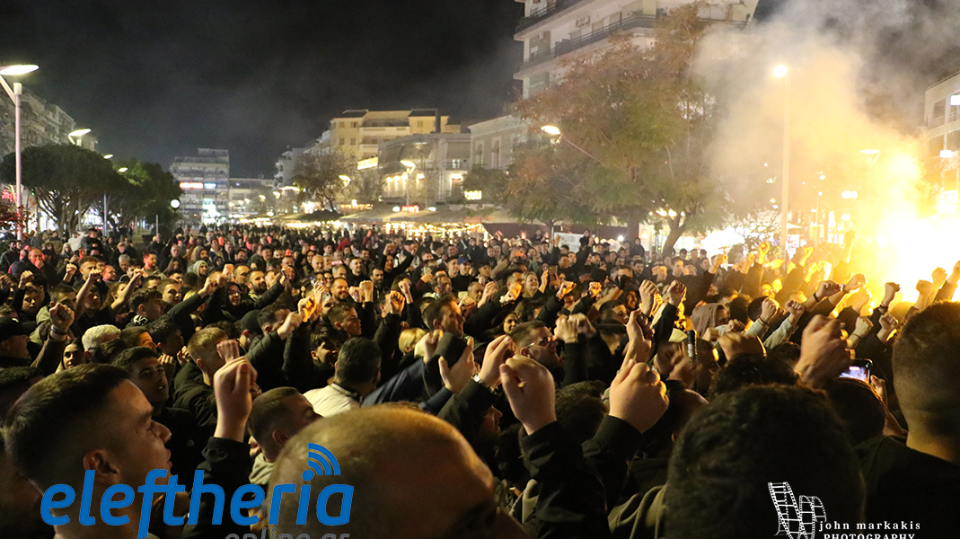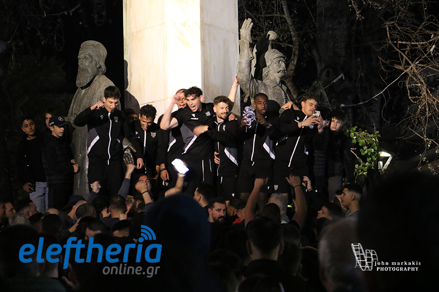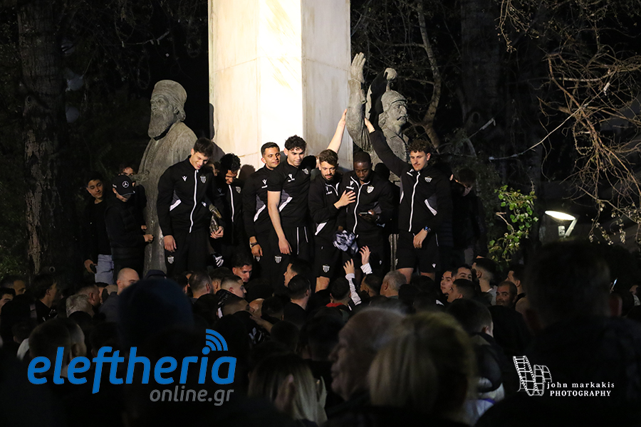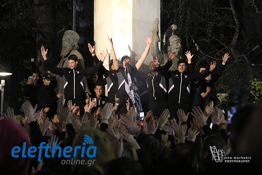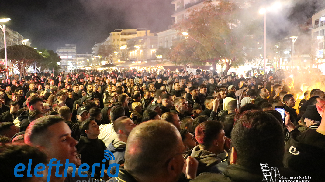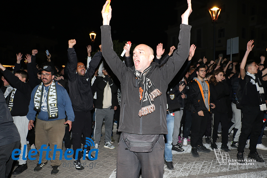Χιλιάδες φίλαθλοι κάθε ηλικίας κατέκλυσαν το βράδυ του Σαββάτου την πλατεία 23ης Μαρτίου, αλλά και την κεντρική πλατεία για να υποδεχτούν την αποστολή της «Μαύρης Θύελλας» από τη Νέα Σμύρνη.