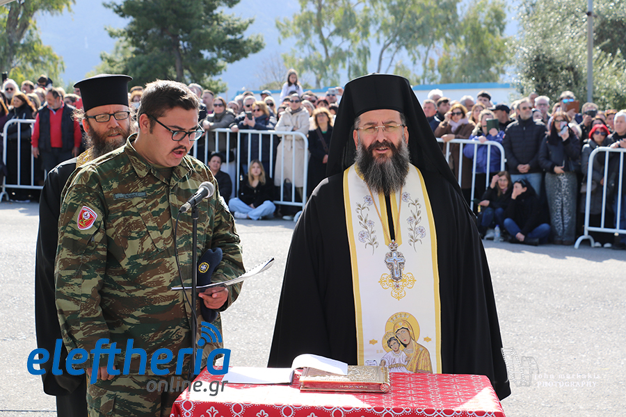 Στο θρησκευτικό τελετουργικό με τη δοξολογία πρωτοστάτησε ο πρωτοσύγκελλος της Μητρόπολης Μεσσηνίας Αρχιμ. Φίλιππος Χαμαργιάς, ο οποίος όρκισε τους 869 στρατιώτες, ενώ δέκα άθεοι στρατιώτες έδωσαν αναγγελία υπόσχεσης.