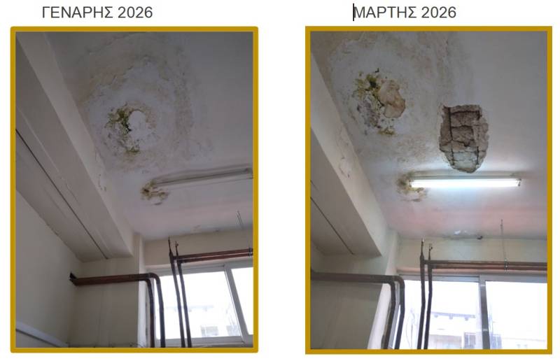 “Η εικόνα από τα εργαστήρια των 1ου, 2ου και Εσπερινού ΕΠΑΛ Καλαμάτας δεν αφήνουν κανένα περιθώριο εφησυχασμού. Μέσα σε διάστημα μόλις δύο μηνών, μια εμφανής διαρροή και φθορά στην οροφή –με διογκωμένο σοβά και έντονη υγρασία– εξελίχθηκε σε κατάρρευση τμήματός της, στον χώρο όπου καθημερινά βρίσκονται μαθητές και εκπαιδευτικοί. Ενημέρωση και προειδοποίηση των αρμόδιων υπήρξε, όμως, δεν ελήφθη κανένα ουσιαστικό μέτρο. Το αποτέλεσμα είναι η κατάρρευση σοβάδων και το επόμενο στάδιο, αν συνεχιστεί αυτή η κατάσταση, μπορεί να είναι πολύ πιο επικίνδυνο.
