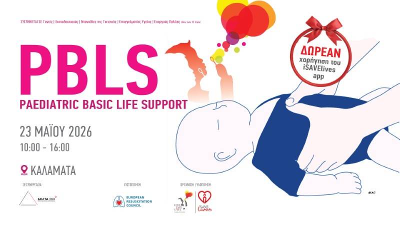 Το παιδιατρικό σεμινάριο θα πραγματοποιηθεί το Σάββατο 23 Μαΐου από τις 10 το πρωί έως τις 4 το μεσημέρι στη Σ.Α.Ε.Κ. ΔΕΛΤΑ 360° Καλαμάτας και απευθύνεται σε γονείς, εκπαιδευτικούς, νταντάδες της γειτονιάς, επαγγελματίες υγείας, ενεργούς πολίτες (άνω των 12 ετών).