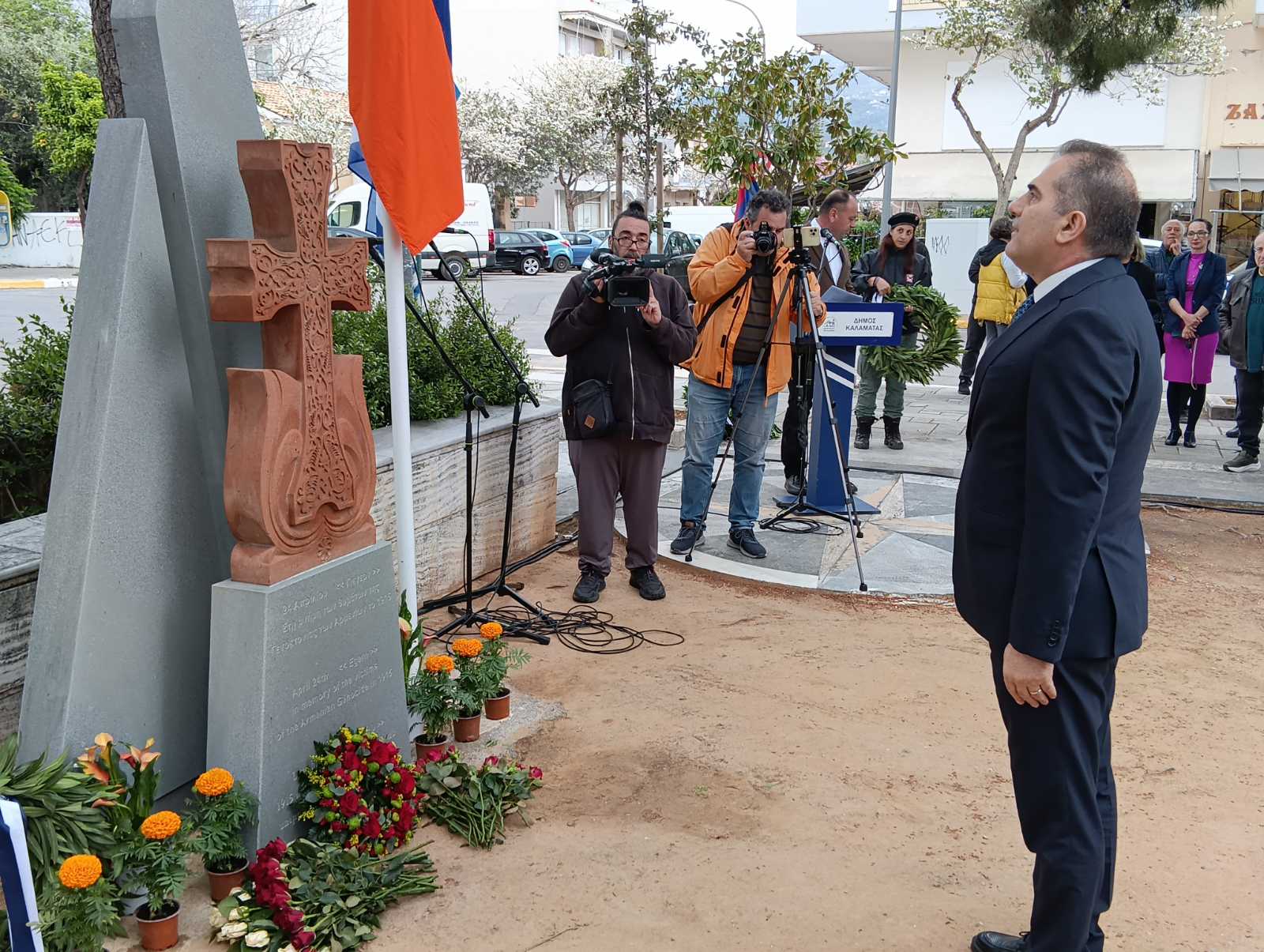 Στη συνέχεια, έγινε κατάθεση στεφανιών από τον δήμαρχο Καλαμάτας, τον βουλευτή Μ. Χρυσομάλλη, την αντιπεριφερειάρχη Μ. Οικονομάκου, τον εκπρόσωπο του Ανώτερου Διοικητή Φρουράς – υπολοχαγό Πεζικού Αθανάσιο Τσάκωνα, τον Χ. Χατσατουριάν και την πρόεδρο της Κοινότητας των Αρμενίων Καλαμάτας Σοφία Μαρκαριάν.