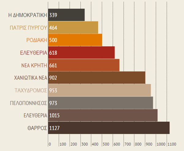 Μια ανάσα από την κορυφή βρίσκεται η "Ελευθερία" και στο Twitter! Στο μέσο κοινωνικής δικτύωσης, που χαρακτηρίζεται ως το πλέον ενημερωτικό, με ένα δυναμικό και υψηλής μόρφωσης κοινό, η "Ελευθερία" διατηρεί έναν λογαριασμό με 2.181 Followers, που τη φέρνει στη δεύτερη θέση της μέτρησης του reforme.gr. Στην πρώτη θέση βρίσκονται τα "Χανιώτικα Νέα" με 2.850 followers και στην τρίτη η "Δημοκρατική" της Ρόδου με 1.912 followers. Στην τέταρτη το "Θάρρος" της Καλαμάτας με 1.713 followers, ενώ την πρώτη πεντάδα συμπληρώνει ο "Παρατηρητής" της Κομοτηνής με 1.659 followers.