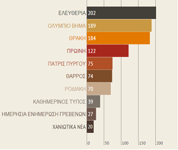 Η "Ελευθερία" αναδεικνύεται πρώτη και στη μέτρηση του reforme.gr σχετικά με τις δημοφιλέστερες σελίδες στο Google+, ενώ καταλαμβάνει μια από τις πρώτες πέντε θέσεις των τοπικών εφημερίδων όλης της χώρας στο άλλο κοινωνικό δίκτυο της Google, "http://reforme.gr/2014/12/02/952-local-newspapers-youtube-december/" στο YouTube.