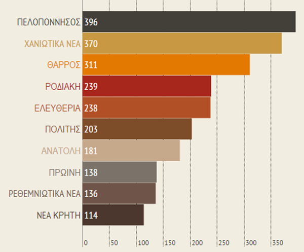 Στο δημοφιλέστερο μέσο κοινωνικής δικτύωσης προσελκύει στη σελίδα της ένα κοινό της τάξης των 55.263 ατόμων, επίδοση που την φέρνει πρώτη μεταξύ των περιφερειακών εφημερίδων, αλλά και ανάμεσα στα κορυφαία μέσα στο σύνολο της χώρας. Στην δεύτερη θέση της κατάταξης ακολουθεί η "Δημοκρατική" της Ρόδου με 22.484 likes, ενώ στην τρίτη θέση βρίσκεται η "Ροδιακή" με 21.951 likes. Τέταρτη είναι η εφημερίδα το "Θάρρος" της Καλαμάτας με 18.364 likes και πέμπτη η "Πατρίς" Πύργου με 15.905 likes.