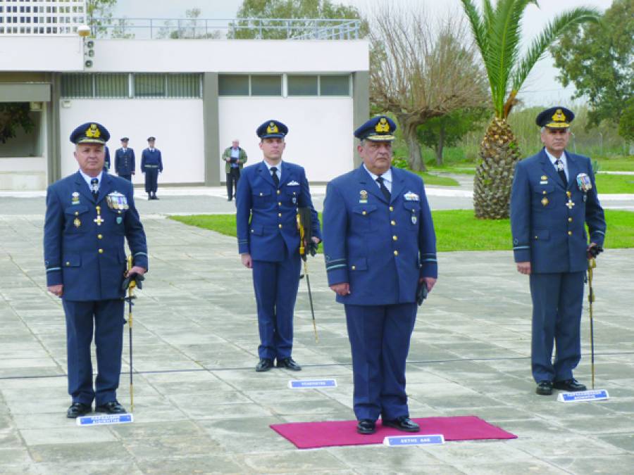 Ο ταξίαρχος (Ι) Γρηγόρης Δημακογιάννης παρέδωσε στο νέο διοικητή - ταξίαρχο (Ι) Θεόδωρο Λάγιο, παρουσία του διοικητή Διοίκησης Αεροπορικής Εκπαίδευσης (ΔΑΕ) - υποπτέραρχου (Ι) Γιάννη Μανωλάκου.