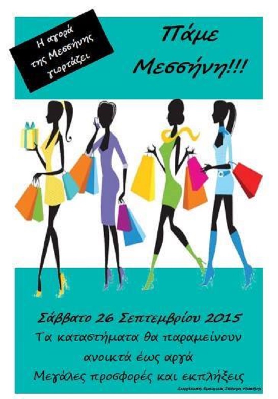 Οπως δήλωσε στην "Ε" ο πρόεδρος του Εμπορικού Συλλόγου Μεσσήνης Γιώργος Τσακόπουλος, τα μαγαζιά θα ανοίξουν κανονικά το πρωί και έπειτα πάλι από τις 6 μ.μ. μέχρι όσο κρατήσει η γιορτή. Στους εμπορικούς δρόμους της Αγοράς θα γίνονται διάφορες εκδηλώσεις με χορευτικά συγκροτήματα και ζωντανή μουσική. Τη βραδιά θα ανοίξει η Φιλαρμονική του Δήμου Μεσσήνης.