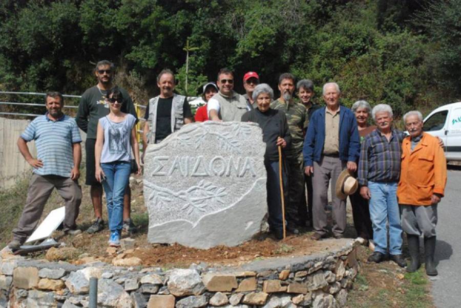Μία εντυπωσιακή επιγραφή, σκαλισμένη σε Μανιάτικη πέτρα, τοποθετήθηκε την Κυριακή το πρωί, στην είσοδο της Σαϊδόνας, με στόχο να ομορφύνει ακόμη περισσότερο η περιοχή.
