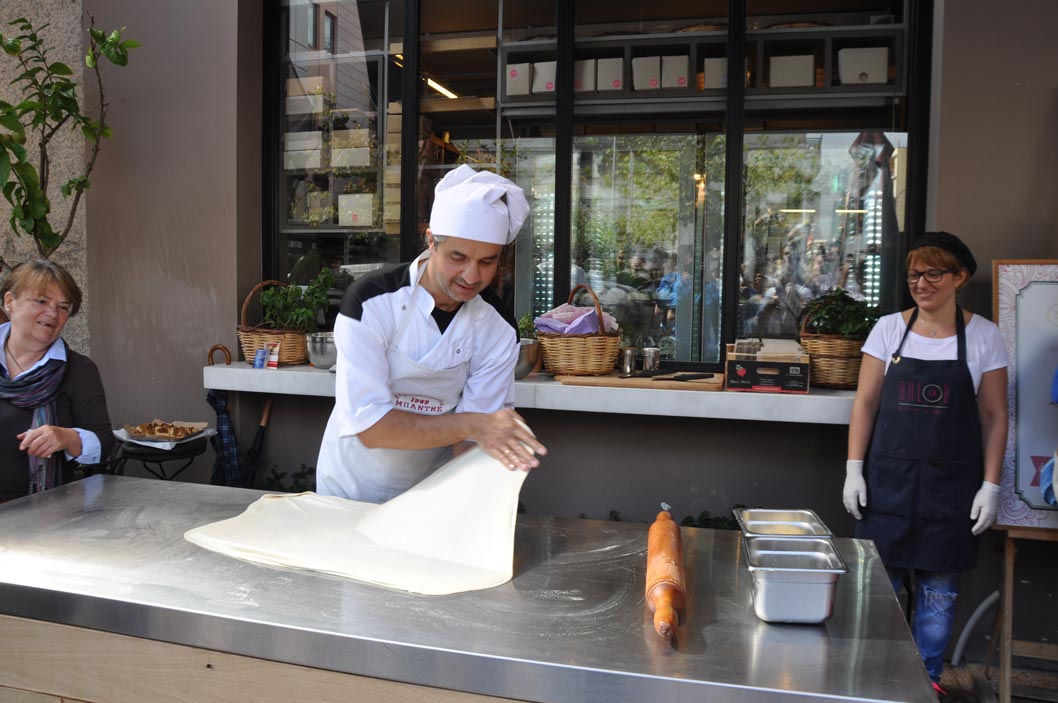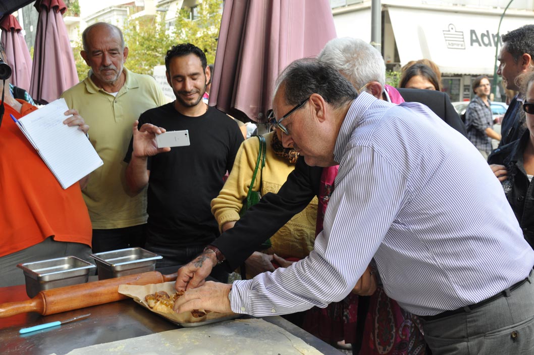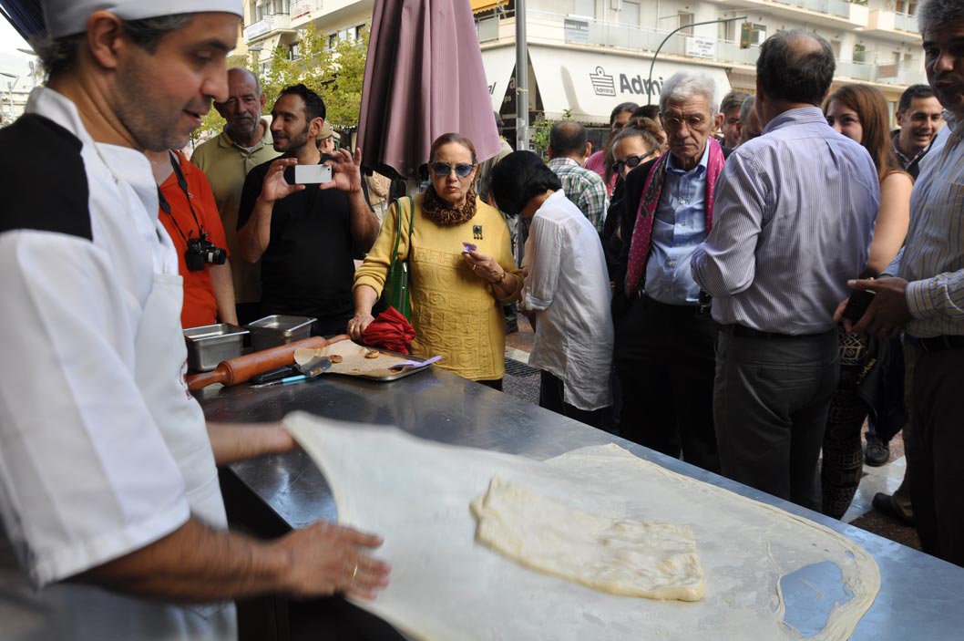 Σήμερα το μεσήμέρι λοιπόν από το παραδοσιακό μπουγατσατζίδικο του Φίλιππου Μπαντή ετοίμασαν μπουγάτσες με κρέμα και με τυρί και κέρασαν του Καλαματιανούς, που περνούσαν από καφετέρια στη συμβολή των οδών Αριστομένους και Φραντζή. Ραντεβού για μπουγάτσα έδωσαν μάλιστα και ο δήμαρχος Καλαμάτας Παναγιώτης Νίκας με τον ομόλογό του της Θεσσαλονίκης Γιάννη Μπουτάρη.
