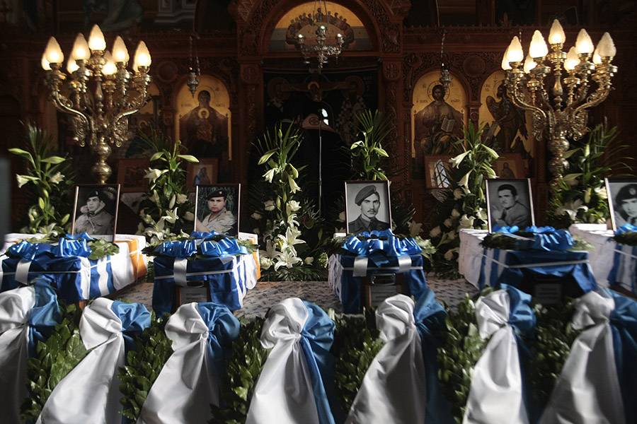 Η τελετή παράδοση - παραλαβής έγινε στην Κύπρο και η τελετή υποδοχής πραγματοποιήθηκε χθες στο υπουργείο Εθνικής Αμυνας. Τα οστά παραδόθηκαν από την ηγεσία του υπουργείου στους συγγενείς των πεσόντων.