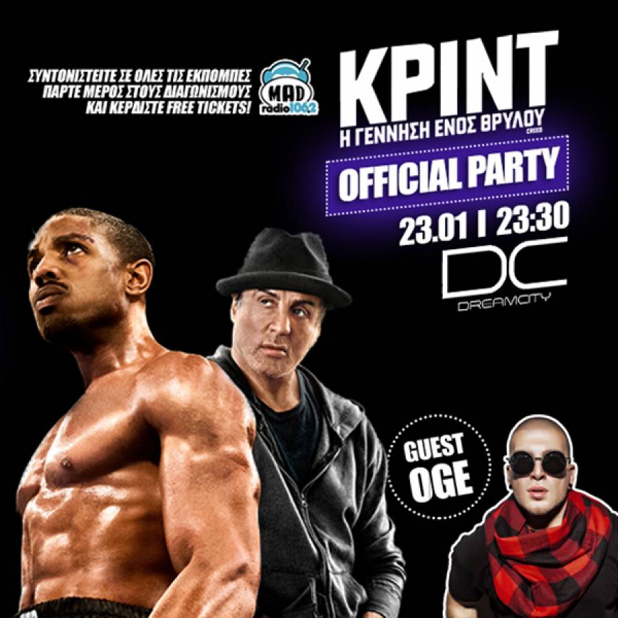 Γράφτηκε από την ΕΛΕΥΘΕΡΙΑ OnlineΟ Καλαματιανός συνθέτης και ράπερ Oge θα εμφανιστεί στο επίσημο πάρτι της πιο πολυαναμενόμενης ταινίας της χρονιάς, του "Κριντ - η γέννηση ενός θρύλου", το Σάββατο 23 Ιανουαρίου στο "Dream City Athens".
