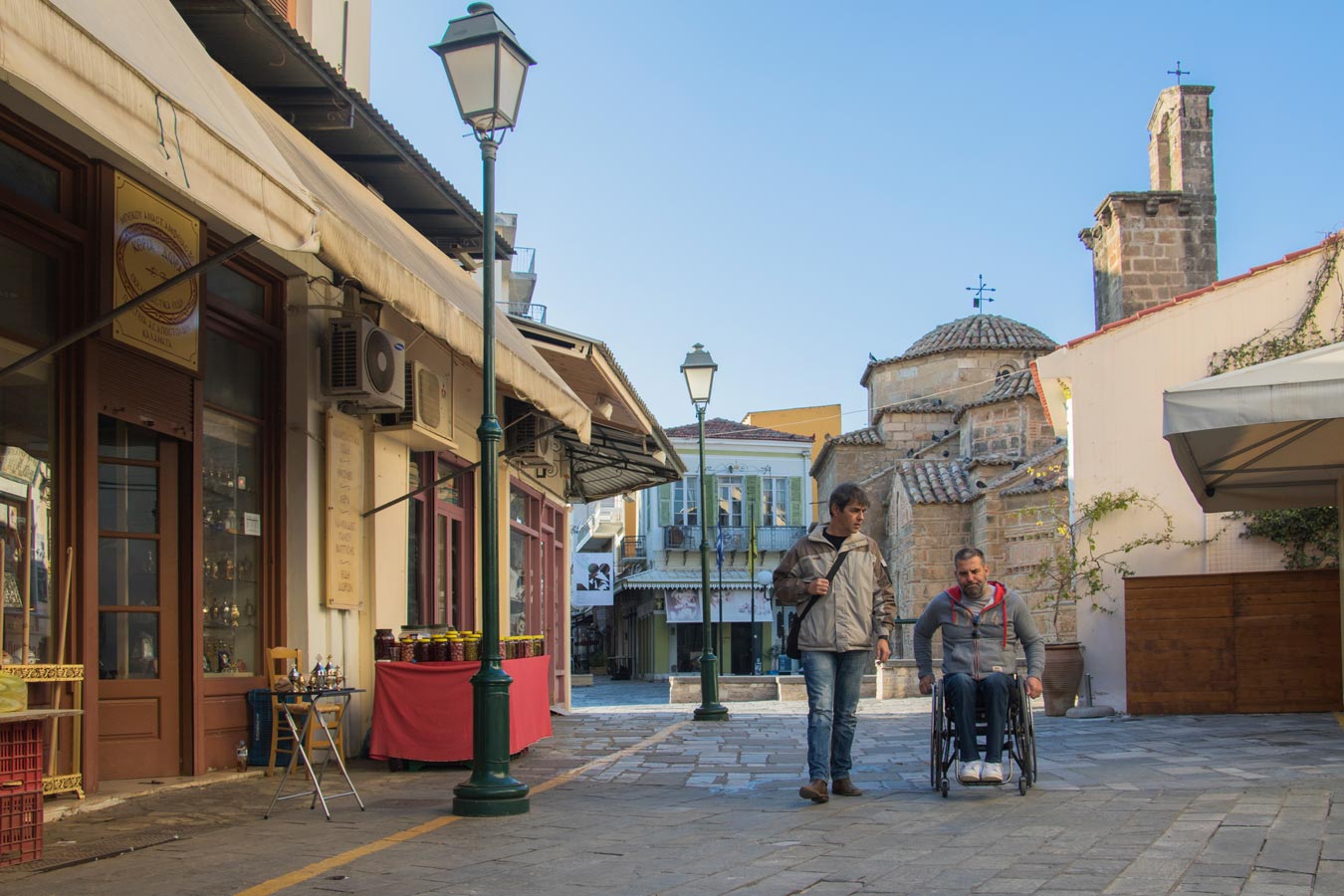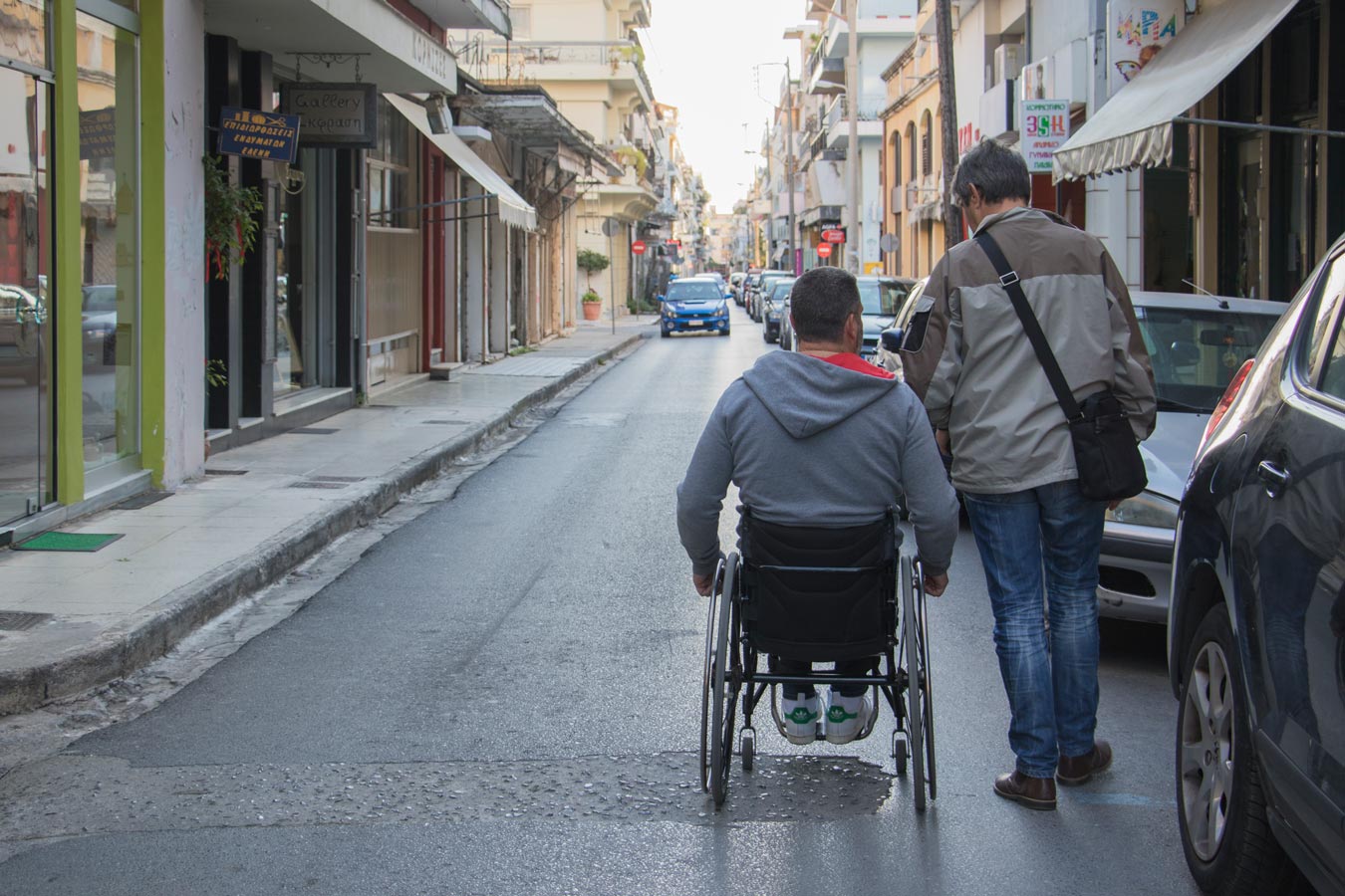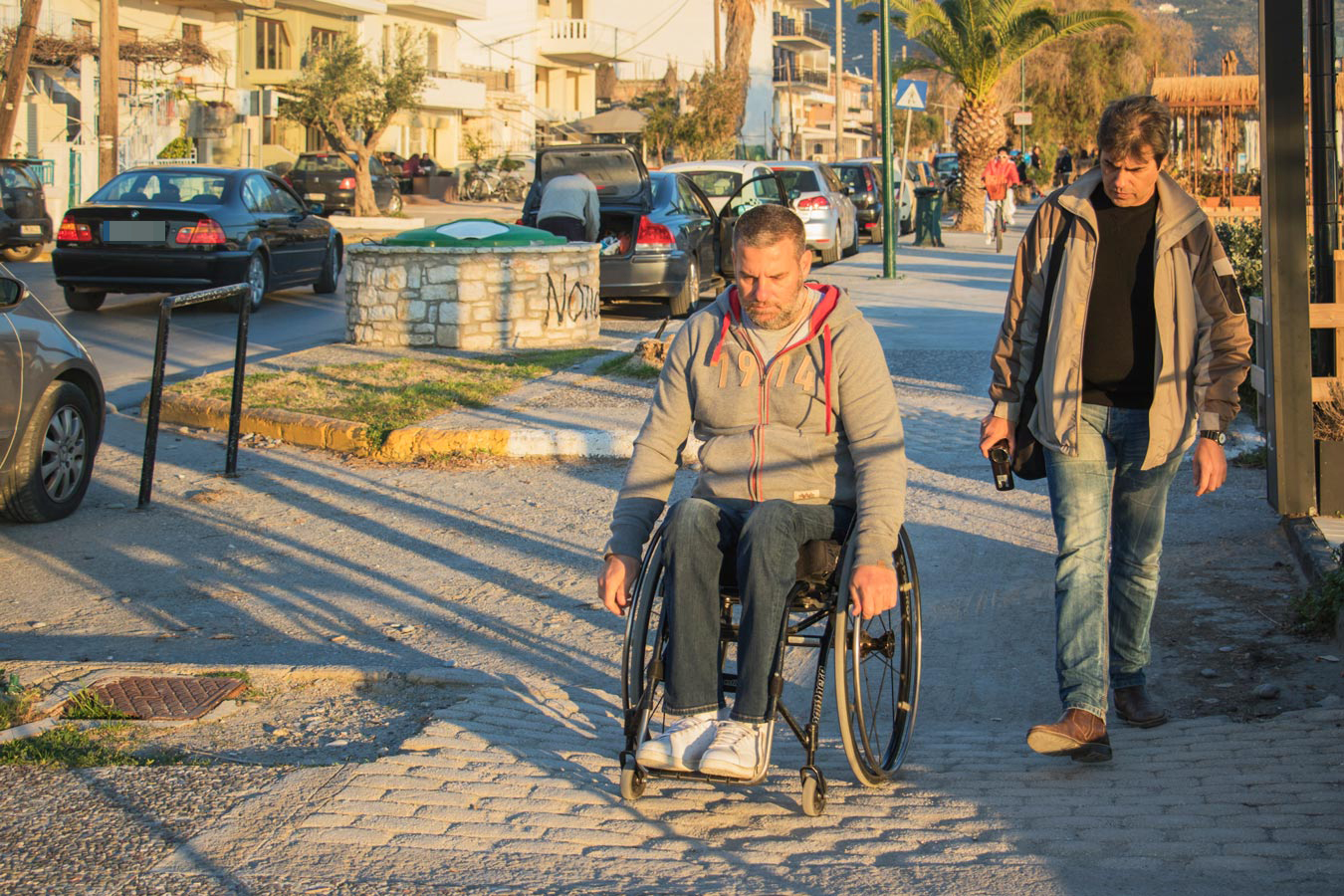 Μια βόλτα που κάναμε μαζί του στην περιοχή του ιστορικού κέντρου, αλλά και στην παραλία, ανέδειξε τα σοβαρά προβλήματα πρόσβασης και μετακίνησης που αντιμετωπίζουν τα άτομα με αναπηρία στην Καλαμάτα, όποτε θελήσουν είτε να επισκεφθούν κάποιο κατάστημα ή υπηρεσία, είτε απλώς να κάνουν μια βόλτα.