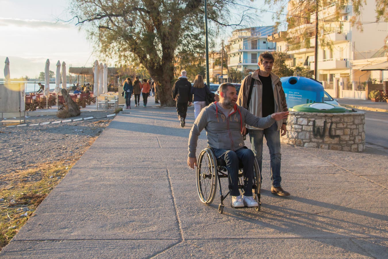 “Για μένα πρέπει να υπάρξει ένας συνδυασμός παιδείας, εφαρμογής των νόμων και παιδείας προκειμένου να φθάσει η Ελλάδα στο επίπεδο άλλων χωρών, στις οποίες οι άνθρωποι με κινητικά προβλήματα διευκολύνονται στην μετακίνησή τους” λέει ο συμπατριώτης μας πρωταθλητής, προσθέτοντας ότι είναι θετικό πως τα τελευταία χρόνια στην Καλαμάτα έχουν, έστω και σχεδόν αποκλειστικά στο κέντρο, αυξηθεί οι ράμπες πρόσβασης, ενώ βήμα προόδου αποτελεί και η ράμπα προς τη θάλασσα, που μπαίνει κάθε καλοκαίρι στην παραλία της Ανάστασης.