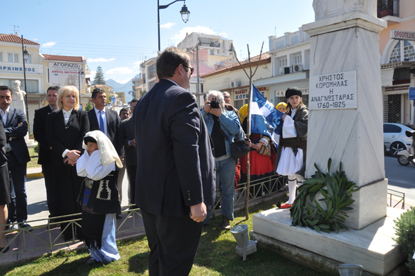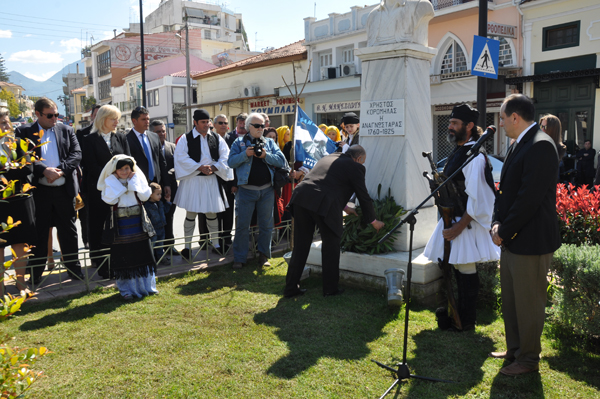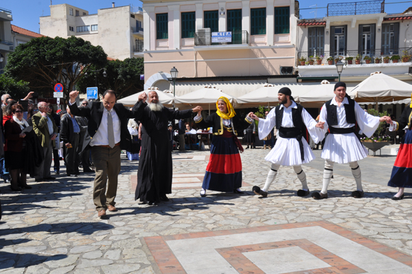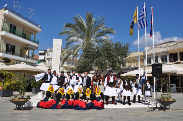 Μετά την επιμνημόσυνη δέηση, έγινε κατάθεση στεφάνων στην προτομή των ηρώων και κατόπιν χόρεψαν τα μέλη του Χορευτικού - Εκπολιτιστικού Συλλόγου «Οι Αμφειείς».