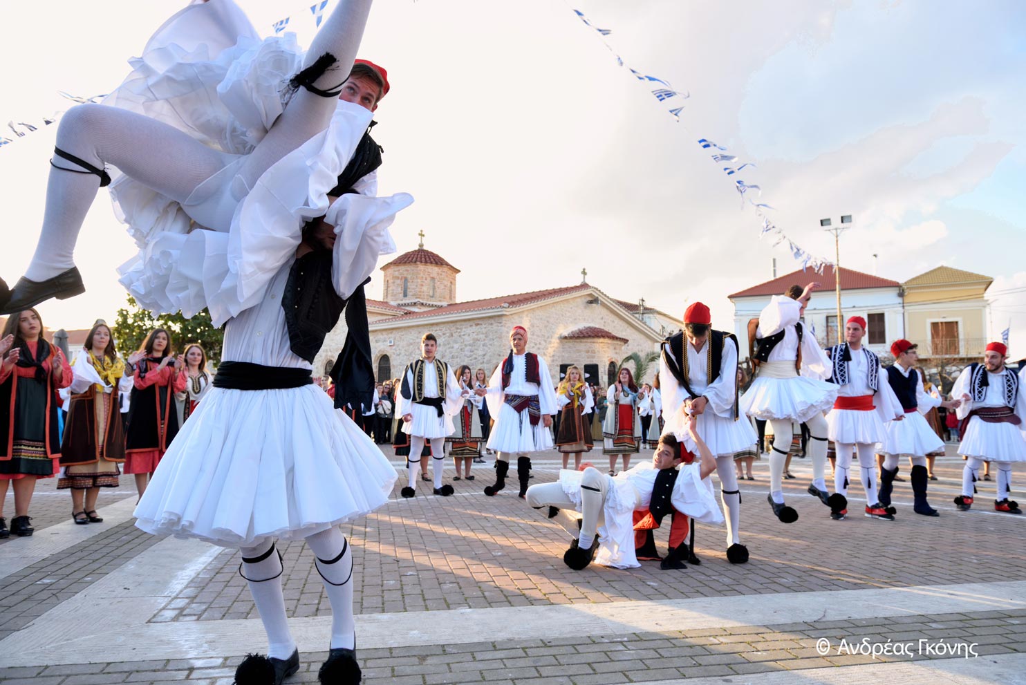 Ωστόσο το απόγευμα με καλό καιρό πραγματοποιήθηκαν οι παραδοσιακοί χοροί από τους μαθητές της πόλης σε μια κατάμεστη από κόσμο κεντρική πλατεία. Τα παιδιά χειροκροτήθηκαν θερμά για την λεβεντιά τους και την πραγματικά εντυπωσιακή παρουσία τους που ξεσήκωσαν το κοινό.