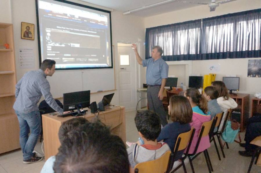 Ο κ. Παπαδόπουλος μίλησε στους μαθητές για την πρώτη ελληνική αποστολή στο διάστημα με τον δορυφόρο Λ-sat, όπου παρέμεινε για περίπου ένα χρόνο σε τροχιά της γης και στόχος του ήταν να μελετήσει την επίδραση της κοσμικής ακτινοβολίας στο υλικό γραφένιο, όταν αυτό βρίσκεται σε συνθήκες χαμηλής γήινης τροχιάς.