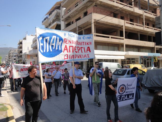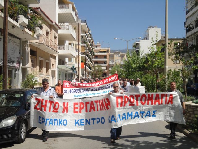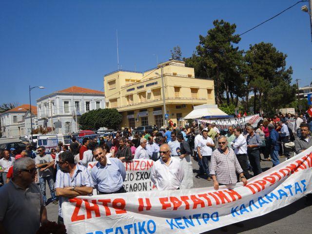 Ο πρόεδρος του Εργατικού Κέντρου Σωτήρης Τσώνης, ο αντιπρόεδρος του Νομαρχιακού Τμήματος της ΑΔΕΔΥ Δημήτρης Πράττης και ο πρόεδρος της Α’ ΕΛΜΕ Μεσσηνίας Βασίλης Γεωργιόπουλος τόνισαν ότι τα μνημόνια βαθαίνουν την κρίση και οδηγούν τη χώρα στην καταστροφή. Ο εκπαιδευτικός Χρήστος Αργυρόπουλος απήγγειλε ποίημα του Φώτη Αγκουλέ για την εργατιά.