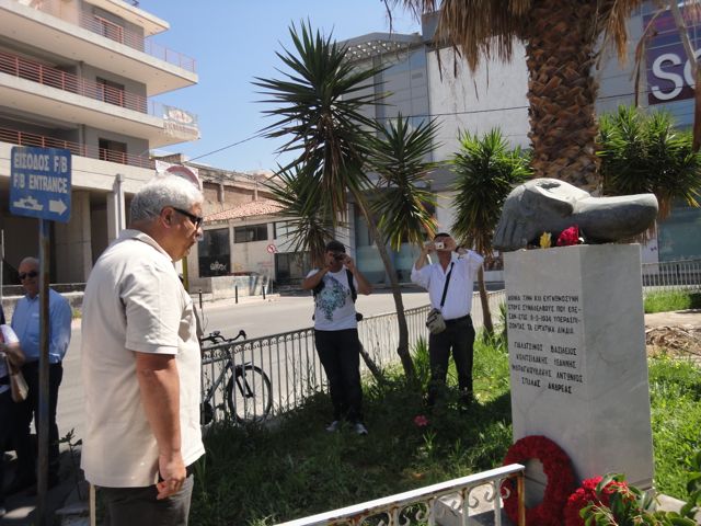 Ακολούθησε πορεία στο λιμάνι στο μνημείο των πεσόντων λιμενεργατών, όπου κατατέθηκαν στεφάνια από τους εκπροσώπους του Εργατικού Κέντρου Παναγιώτη Στέφανο και του Ν.Τ. της ΑΔΕΔΥ Νικολίνα Λέκκα.