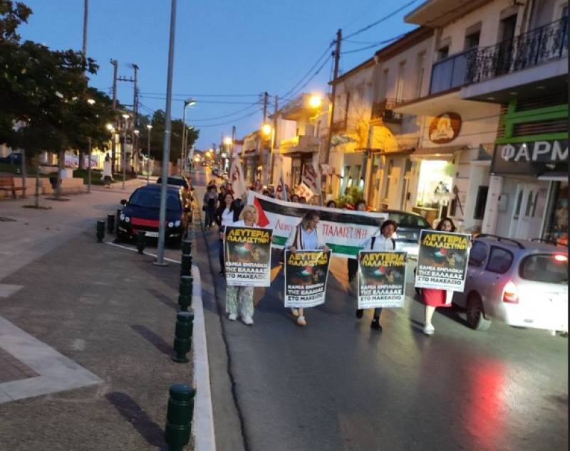 Όπως τονίζεται από την Ομάδα Γυναικών: «Εκφράστηκε ο αποτροπιασμός μας για το συνεχιζόμενο έγκλημα σε βάρος του παλαιστινιακού λαού ειδικά, των παιδιών και των αμάχων από το κράτος δολοφόνο του Ισραήλ και καταγγέλθηκε η εμπλοκή της χώρας μας. Ακολούθησε πορεία στους κεντρικούς δρόμους της πόλης. Τα συνθήματα που ακούστηκαν ήταν λευτεριά στην Παλαιστίνη, Το έγκλημα αυτό έχει υπογραφή ΝΑΤΟ, Ευρωπαίοι και Αμερικανοί. Η ιστορία έχει μια σωστή πλευρά, με την Παλαιστίνη ως τη λευτεριά».σφ