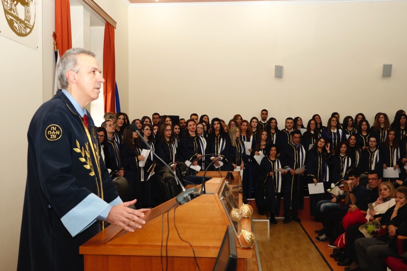 Χαιρετισμό κατά την έναρξη των τελετών ορκωμοσίας απηύθυναν ο πρύτανης του ιδρύματος Θανάσης Κατσής, καθώς και οι πρόεδροι των Τμημάτων Ιστορίας, Αρχαιολογίας και Διαχείρισης Πολιτισμικών Αγαθών Νίκος Ζαχαριάς και Φιλολογίας Βασίλης Κωνσταντινόπουλος. Επίσης διαβάστηκε το μήνυμα του κοσμήτορα της Σχολής Ανθρωπιστικών Επιστημών και Πολιτισμικών Σπουδών, Αλέξη Σαββίδη, προς τους αποφοίτους