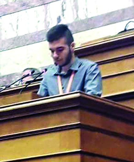 Ο Θανάσης Κωνσταντόπουλος είναι μαθητής στο Λύκειο Κυπαρισσίας και από την πλευρά του έχει να πει στην “Ε” τα εξής: “Λοιπόν ήμουν στην ομάδα που κάτω από την ομπρέλα της διαφορετικότητας, είχε θέμα την σεξουαλικότητα στην νεανική ηλικία. Ασχοληθήκαμε με όλα τα θέματα που αφορούν τους νέους σε σχέση με την σεξουαλικότητα, εντοπίσαμε προβλήματα, προτείναμε λύσεις και όλα αυτά μέσα από συζητήσεις που είχαμε με ψυχολόγους – ψυχαναλυτές, οι οποίοι έχουν ασχοληθεί με εφήβους, εγώ εκπροσώπησα την Στ’ ομάδα στην Ολομέλεια, την τελευταία μέρα, παρουσία υπουργών, υφυπουργών, εκπρόσωπων κομμάτων και του προέδρου της Βουλής. Παρουσίασα περιληπτικά τις προηγούμενες 4 μέρες τι κάναμε και έπειτα στάθηκα στις δράσεις που προτείναμε με σκοπό να βελτιωθεί όσον το δυνατό περισσότερο ότ,ι έχει σχέση με την σεξουαλικότητα των νέων. Η εμπειρία ήταν καταπληκτική, αυτές οι 5 μέρες θα μου μείνουν αξέχαστες, όπως φυσικά και τα παιδιά που γνώρισα” δηλώνει ενθουσιασμένος.