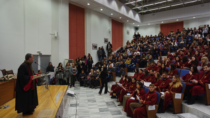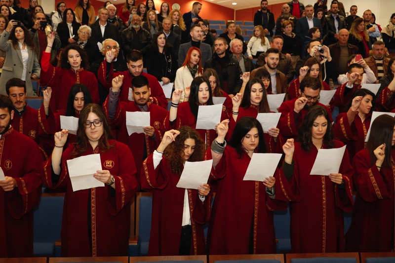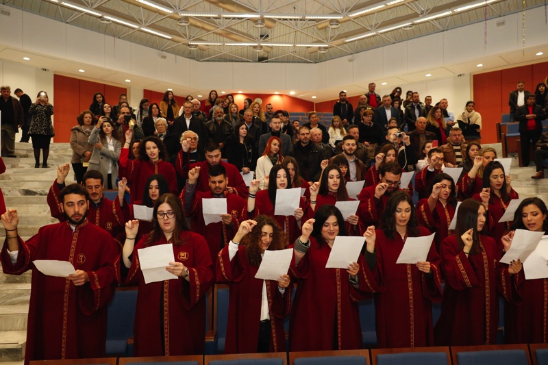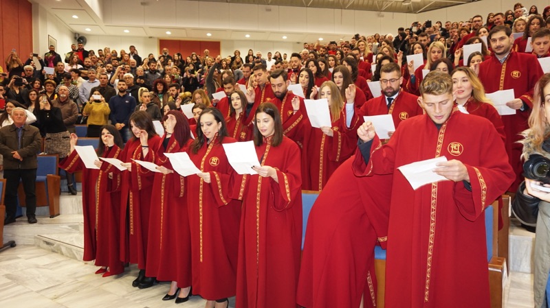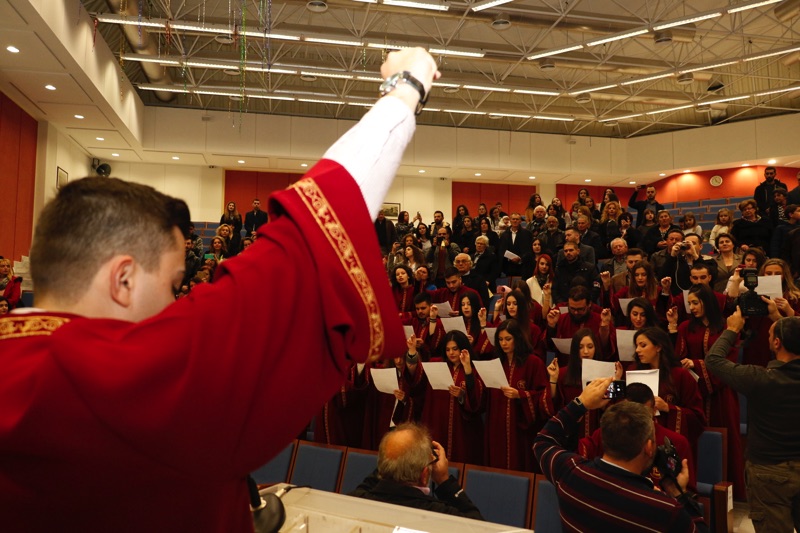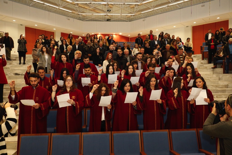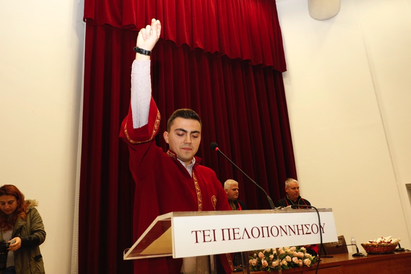 Τον όρκο απήγγειλε ο αριστούχος φοιτητής Νεκτάριος Μίνο και ακολουθούσαν οι υπόλοιποι 25.
