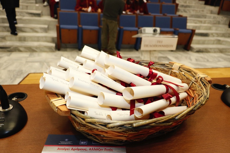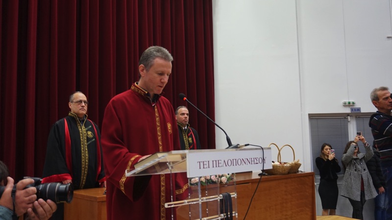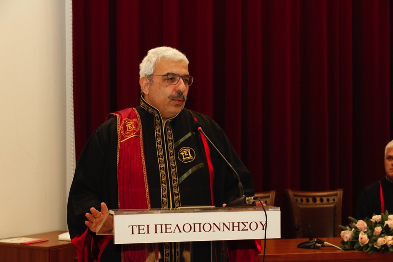 Ο πρύτανης του ΤΕΙ Ιωάννης Καπόλος ευχήθηκε στους πτυχιούχους “να εκπληρώσετε τους στόχους και τα όνειρά σας” και τους συμβούλευσε να μην αποκόψουν τον ομφάλιο λώρο από το ίδρυμα, αλλά να ενημερώνονται από το Γραφείο Διασύνδεσης. Τους προέτρεψε, μάλιστα, να συνεχίσουν τις σπουδές τους στα μεταπτυχιακά προγράμματα του τμήματός τους.