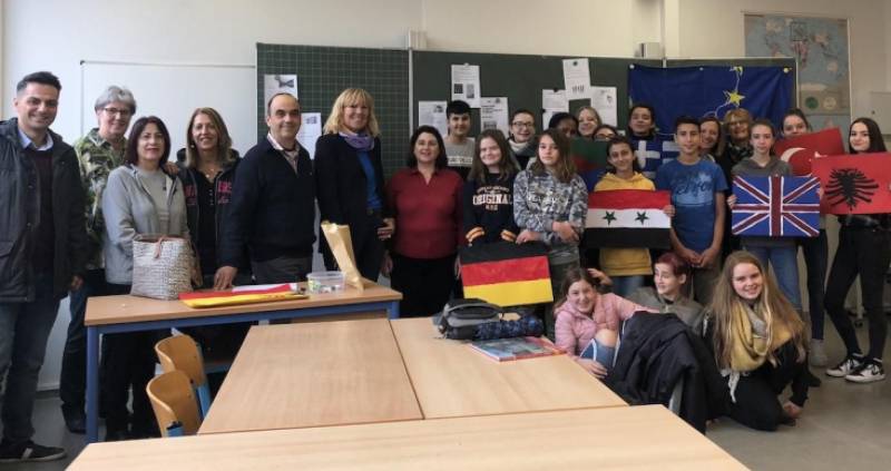 *Η φωτογραφία είναι μαζί με την Διευθύντρια του σχολείου, την Αντιδήμαρχο του Κρεφελντ και τους μαθητές που συμμετέχουν στο πρόγραμμα.