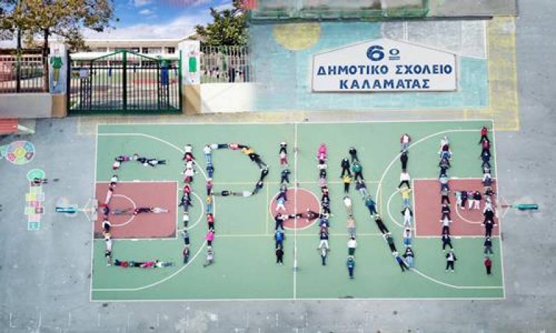 Οι μαθητές έγραψαν με τα σώματά τους στο προαύλιο του σχολείου την λέξη "Ειρήνη" με αφορμή όλα όσα διαδραματίζονται τις τελευταίες εβδομάδες στην Ουκρανία.