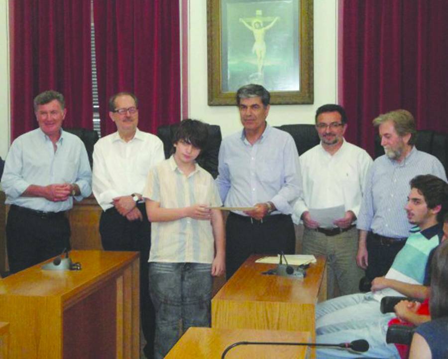 Σε καθέναν από τους διακριθέντες μαθητές της Γ΄ Λυκείου προσέφερε χρηματικό βραβείο, ύψους 250 ευρώ. Ο δήμαρχος Παναγιώτης Νίκας μιλώντας στα παιδιά τους ευχήθηκε καλή πορεία στο δρόμο της γνώσης και επεσήμανε τις ευθύνες των παλαιότερων γενεών για τη δύσκολη σημερινή κατάσταση, τονίζοντας πως η νέα γενιά δίδει ελπίδα για το μέλλον και την υπέρβαση της κρίσης.