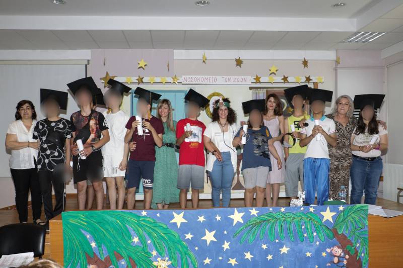 Στη συνέχεια έγινε η τελετή αποφοίτησης 10 παιδιών του σχολείου, ενώ ακολούθησαν αθλητικές δραστηριότητες. Η εκδήλωση συνδυάστηκε με μια αποχαιρετιστήρια γιορτή προς τιμήν της διευθύντριας του 1ου Ειδικού Δημοτικού Ελένης Πιπερίδου, η οποία μετά από 20 χρόνια παρουσίας στο σχολείο πρόκειται να μεταβεί στη γενική αγωγή, εξέλιξη που όπως σημείωσε στην “Ε” δεν ήταν επιλογή της.