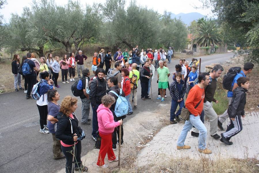 Ένα γνωστό χωριό σε μια μάλλον άγνωστη πλευρά της Μεσσηνίας. Όλοι θυμόμαστε όταν πιτσιρικάδες πηγαίναμε με τις οικογένειές μας στο Πήδημα με τα ψηλά δέντρα και τα πολλά νερά όπου χαζεύαμε και ταΐζαμε τις πάπιες και τους κύκνους. Κάτι που δεν ξέραμε όμως είναι ότι πάνω από το χωριό υπάρχουν ερείπια βυζαντινού κάστρου. Αυτό θα ήταν και το επίκεντρο της συγκεκριμένης εξόρμησης του ορειβατικού συλλόγου Καλαμάτας. Συνάντηση Κυριακή γύρω στις εννέα και μισή στο χαρακτηριστικό σημείο δίπλα στο μύλο κοντά στις πηγές του Πηδήματος που υδρεύουν την Καλαμάτα και άλλες περιοχές της Μεσσηνίας. Έχουμε μαζευτεί τουλάχιστον εξήντα άτομα, ακολουθούμε την ταμπέλα για κάστρο Πηδήματος και ξεκινάμε με ανηφόρα ανάμεσα σε ελιές, πιο ψηλά το εύκολο αλλά έντονα ανηφορικό μονοπάτι στενεύει και μας αναγκάζει να περπατάμε ο ένας πίσω από τον άλλον. Η βλάστηση είναι πυκνή, οι ελιές δίνουν τη θέση τους σε διάφορα άλλα δέντρα και θάμνους αλλά και σε βράχους στις τρυπούλες των οποίων έχουν φυτρώσει κυκλάμινα. Οι μυρωδιές από ρίγανη, θυμάρι και το σκίνο με τους μικρούς κόκκινους καρπούς μπερδεύονται με αυτή του φασκόμηλου που υπάρχει σε αφθονία, όπως και η ασφάκα , την οποία όμως οι περισσότεροι δεν μπορούμε να ξεχωρίσουμε από το φασκόμηλο και μας εξηγούν τη διαφορά τους αυτοί που γνωρίζουν.