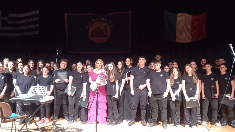Η καθηγήτρια μουσικής και υπεύθυνη της χορωδίας κ. Νικολοπούλου είχε σχεδιάσει ένα άψογο μουσικό πρόγραμμα με τραγούδια του Μίκη Θεοδωράκη, του Μάνου Χατζιδάκι, του Διονύση Σαββόπουλου, αλλά και αγαπημένα παραδοσιακά και δημοτικά τραγούδια, ενώ δεν έλειψαν και τα ευρηματικά σκετσάκια στην αρχή της παράστασης που πρόσδωσαν χιούμορ στη βραδιά! Το “παρών” στην όμορφη εκδήλωση έδωσε ο μητροπολίτης Μεσσηνίας κ. Χρυσόστομος ο οποίος απεύθυνε χαιρετισμό, ο δήμαρχος Καλαμάτας Θανάσης Βασιλόπουλος, αντιπεριφερειάρχες, αντιδήμαρχοι, εκπρόσωποι φορέων, εκπαιδευτικοί, γονείς και πολύς κόσμος που χειροκρότησε θερμά τους μαθητές και τις μαθήτριες. Αξίζει να σημειωθεί πως ο Σύλλογος Γονέων και Κηδεμόνων του σχολείου στηρίζει ενεργά την προσπάθεια για το ταξίδι στο Μιλάνο.