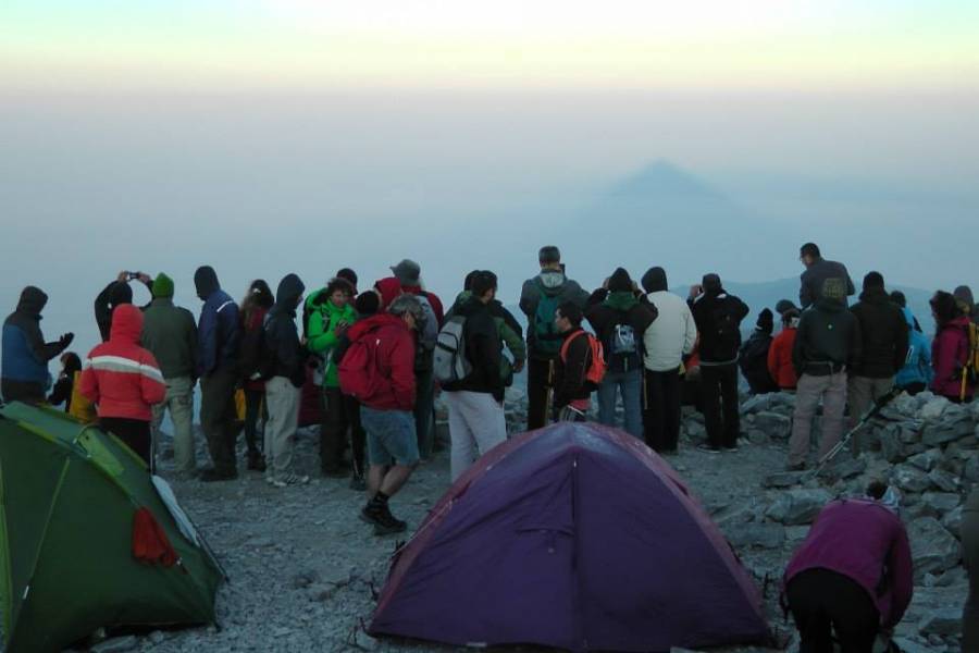 Φτάσαμε! Τα πόδια μας περπατούσανε στα 2.407 μέτρα. Συναντήσαμε και την ομάδα που είχε διανυκτερεύσει το βράδυ εκεί, μπροστά από το μικρό πλινθόκτιστο ξωκκλήσι του Προφήτη Ηλία. Το θέαμα που συνάντησα όταν κοίταξα γύρω μου είναι κάτι που δεν είναι δυνατόν να το περιγράψεις με απλές λέξεις. Τα συναισθήματα ήταν τόσο έντονα και το δέος που ένιωσα τεράστιο. Το όλο σκηνικό ήταν τόσο επιβλητικό. Ενιωθες σαν να βρίσκεσαι στο ψηλότερο σημείο του κόσμου. Η ηθική ικανοποίηση και οι εικόνες που συναντάς όταν πατάς το πόδι σου σε αυτή την κορυφή σε αποζημιώνουν για ό,τι πέρασες μέχρι να φτάσεις μέχρι εκεί, με αποτέλεσμα να μη νιώθεις την παραμικρή κούραση.