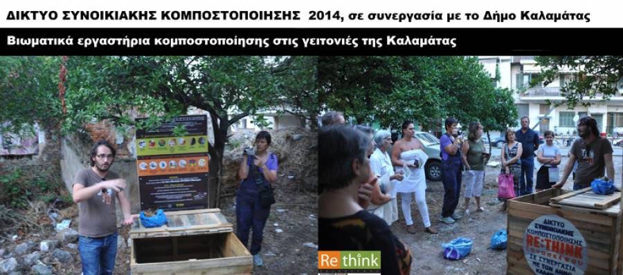 Νέους κομποστοποιητές θα τοποθετήσει η ομάδα του "Re:think" την Τετάρτη 15 Οκτωβρίου στην οδό Μπουλούκου και την Παρασκευή 17 Οκτωβρίου στο 3ο Γυμνάσιο Καλαμάτας. Εκεί θα γίνει και ολοήμερο εργαστήριο με τους μαθητές.