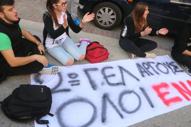 Το πρωί σήμερα οι μαθητές του ΕΠΑΛ Άργους και του 1ου, 2ου και 3ου γενικού λυκείου Άργους, πραγματοποίησαν πορεία στους κεντρικούς δρόμους της πόλης και στην συνέχεια συγκεντρώθηκαν στην πλατεία του Αγίου Πέτρου έξω από το παλαιό δημαρχείο Άργους Μυκηνών όπου έκαναν για αρκετή ώρα καθιστική διαμαρτυρία, φωνάζοντας συνθήματα κατά της κυβέρνησης και του υπουργού Παιδείας.
