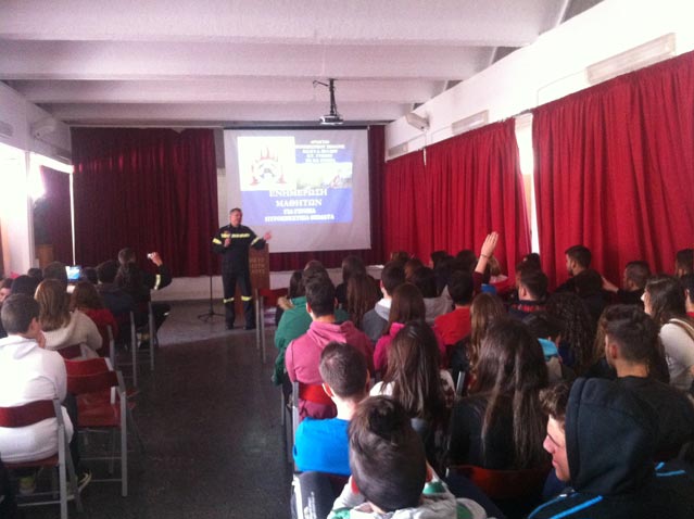 Μετά το πέρας της άσκησης οι Εκπαιδευτικοί συγκέντρωσαν τους μαθητές στην αίθουσα εκδηλώσεων προκειμένου να παρακολουθήσουν ομιλία του πυραγού Γραφάκου Κωνσταντίνου πάνω σε θέματα :