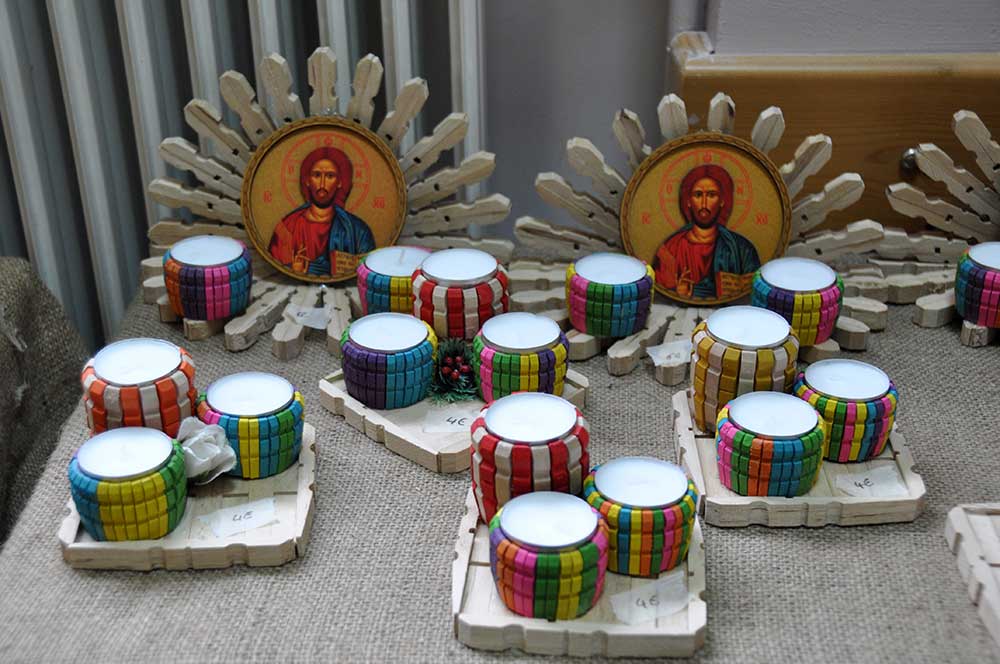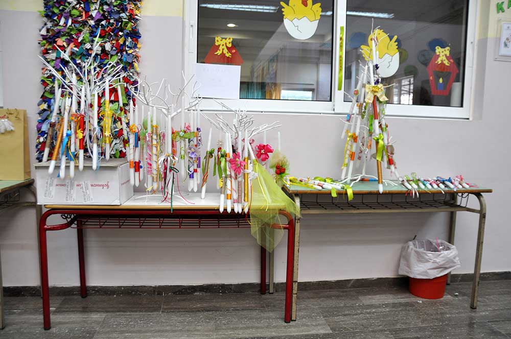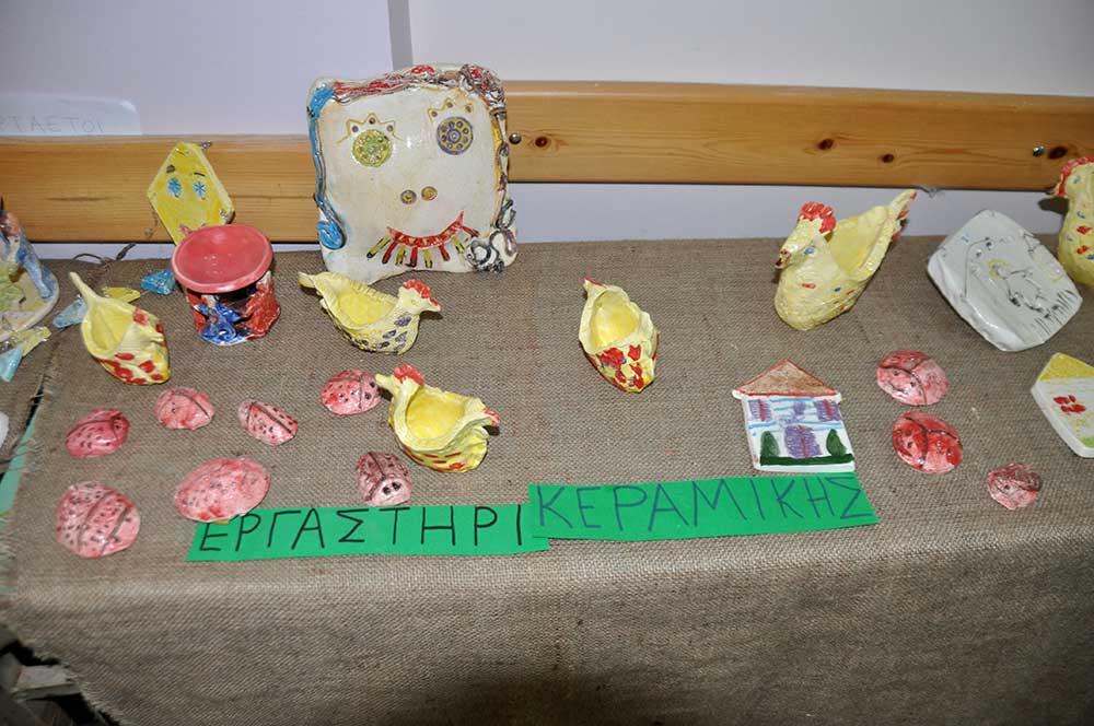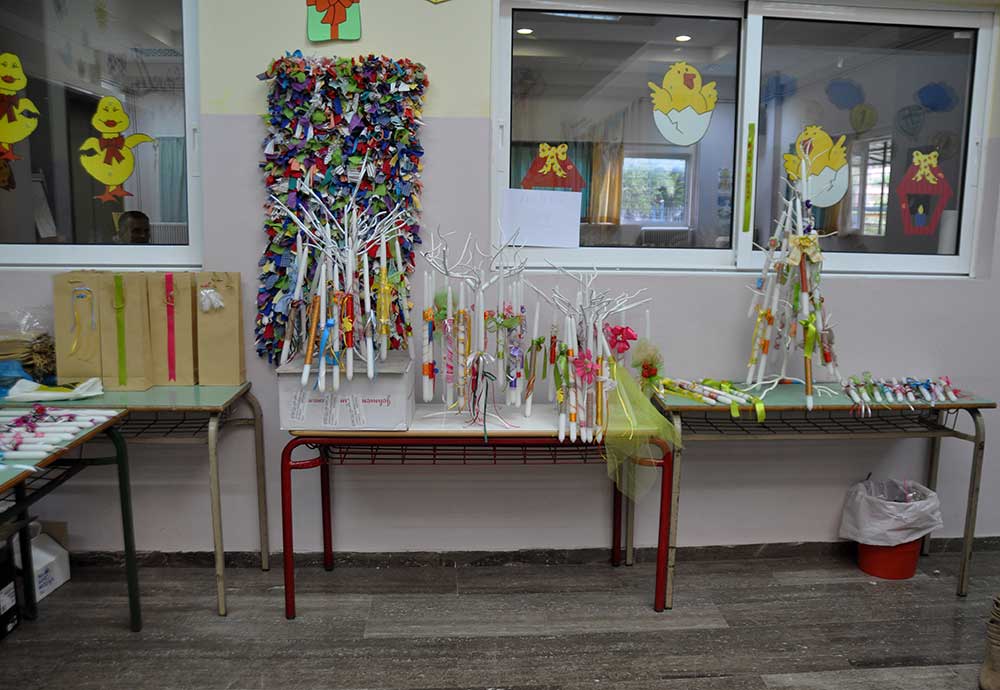 Οι γονείς είχαν φτιάξει λαμπάδες και τα τμήματα των παιδιών έργα κεραμικής και διακοσμητικά αντικείμενα. Πολλές ήταν οι ωραίες δημιουργίες από ξύλινα μανταλάκια, από την ομάδα του Κώστα Κουράκου.