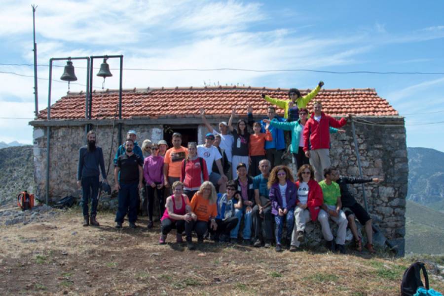 Το πρωί της Κυριακής, όπως και η υπόλοιπη ημέρα βέβαια, ήταν εξαιρετικό, με μία αισθητή δροσιά στον αέρα που σε προετοιμάζει να δεχτείς πιο εύκολα καινούριες εμπειρίες. Η διαδρομή μέχρι το Ανω Καρβέλι με το βανάκι του συλλόγου ήταν σύντομη οπότε και ξεκινήσαμε άμεσα την πορεία μας για το εκκλησάκι του Προφήτη Ελισαίου. Κατά την διάρκεια λοιπόν της ανάβασης ξεκίνησε και η γνωριμία με τα υπόλοιπα μέλη του συλλόγου, που πρέπει να πω ότι είναι άνθρωποι ανοιχτόμυαλοι, που σε δέχονται πολύ ευχάριστα στην ομάδα τους σαν να σε ξέρουν χρόνια. Κάπου εκεί η «μοναξιά του ορειβάτη» μειώθηκε αρκετά, σχεδόν εξαφανίστηκε και σταμάτησα να την σκέφτομαι. Η θέα από το εκκλησάκι ήταν φανταστική, δεν περίμενα άλλωστε και τίποτα λιγότερο μιας που ο στόχος κάθε ορειβάτη είναι η κορυφή - γίνεται να έχεις άσχημη θέα από την κορυφή; Δεν γίνεται φυσικά.