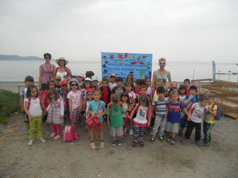 Οι μαθητές με τις δασκάλες τους καθάρισαν την ακτογραμμή κοντά στο σχολείο τους και μοίρασαν ενημερωτικά φυλλάδια που σχεδίασαν για την προστασία της θάλασσας.
