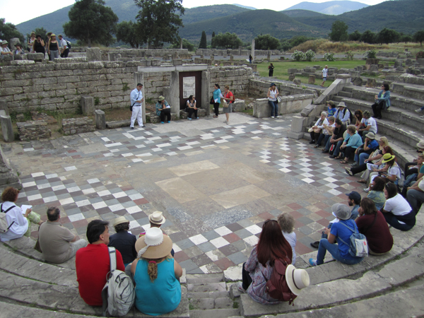Το επιτόπιο μάθημα έγινε από την επίκουρο καθηγήτρια του Πανεπιστημίου Πελοποννήσου Ιωάννα Σπηλιοπούλου (Τμήμα Ιστορίας, Αρχαιολογίας και Διαχείρισης Πολιτισμικών Αγαθών της Καλαμάτας), που δίδαξε κατά την τριετία 2012 - 2015 το μάθημα «Ζητήματα διαχείρισης πολιτισμικής κληρονομιάς» του προγράμματος, με την υποστήριξη του μεταπτυχιακού της φοιτητή, Δημητρίου Σταματόπουλου διευθυντή του Δημοτικού Σχολείου Λεείκων Καλαμάτας καθώς και της φιλολόγου του Γυμνασίου Παραλίας Καλαμάτας Μαρίας Σταματοπούλου, μεταπτυχιακής φοιτήτριας στη διά βίου μάθηση και συνεχιζόμενη εκπαίδευση. Την ομάδα συνόδευσε η υπεύθυνη του Θεματικού Πεδίου 6, δρ. Εύη Εξάρχου, η οποία διοργάνωσε και την εκδρομή.
