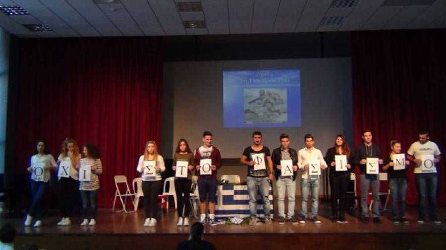 Οι μαθητές και μαθήτριες του σχολείου εξιστόρησαν τα ιστορικά γεγονότα με ποιήματα, χρονικό της επετείου και θεατρικό δρώμενο. Η εκδήλωση έκλεισε με το τραγούδι "Δεν θα περάσει ο φασισμός" με το οποίο τα παιδιά έστειλαν το δικό τους αντιπολεμικό μήνυμα.