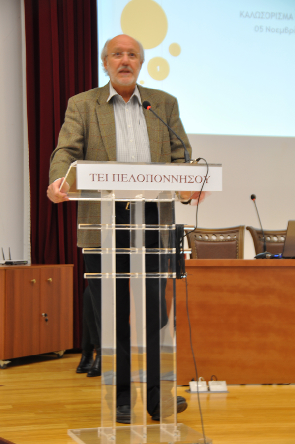 Πρώτη πήρε το λόγο η Γεωργία Λιάκουρα από τη γραμματεία, η οποία κάλεσε στο βήμα τον πρόεδρο Δημήτρη Βελισσαρίου. Ο ίδιος έδωσε διάφορες πληροφορίες στους πρωτοετείς για τις σπουδές τους, τα πτυχία και τα μεταπτυχιακά που μπορούν να κάνουν στη συνέχεια. Τους πρότεινε επίσης να ασχοληθούν με διάφορες πολιτιστικές δραστηριότητες μέσα στο ΤΕΙ. Ακολούθησε η προβολή παρουσίασης διαφανειών για τις σχολές και τα τμήματα και χαιρετισμός από τον αντιπρόεδρο Ιωάννη Δημόπουλο.