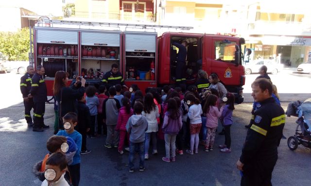 Συνοδευόμενοι από τους δασκάλους τους οι μαθητές είχαν την ευκαιρία να ενημερωθούν διεξοδικά, από τον υπεύθυνο Αξιωματικό καθώς και λοιπούς συναδέλφους, σχετικά με το επάγγελμα του πυροσβέστη. Αφού δόθηκαν πρακτικές συμβουλές για τους τρόπους αποφυγής πρόκλησης πυρκαγιάς, δόθηκε η δυνατότητα σε όλους τους μαθητές να χειριστούν, ο καθένας για λίγο, πυροσβεστικά εργαλεία.
