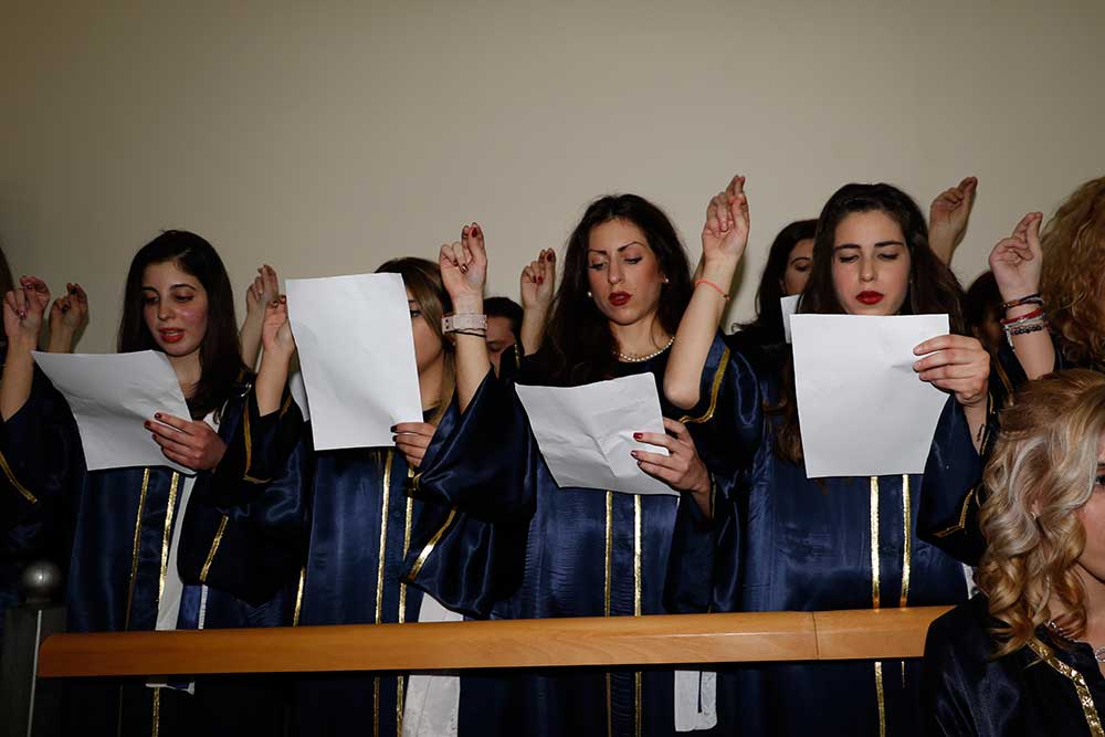 Τον όρκο του Τμήματος Φιλολογίας διάβασε η Σταυρούλα Γκέκα, του μεταπτυχιακού «Αρχαία και Νέα Ελληνική Φιλολογία» ο Αναστάσιος Μανωλάκης, ενώ της «Ηθικής Φιλοσοφίας» είχε προγραμματιστεί να τον διαβάσει η πρωτεύσασα Παναγιώτα Μπουμπούλη. Η ίδια κάλεσε όμως στο βήμα τον π. Φίλιππο Χαμαργιά και ευχαριστώντας τον για την ηθική στήριξη που παρείχε στους φοιτητές, τού παραχώρησε τη θέση της και ανάγνωσε εκείνος τον όρκο.