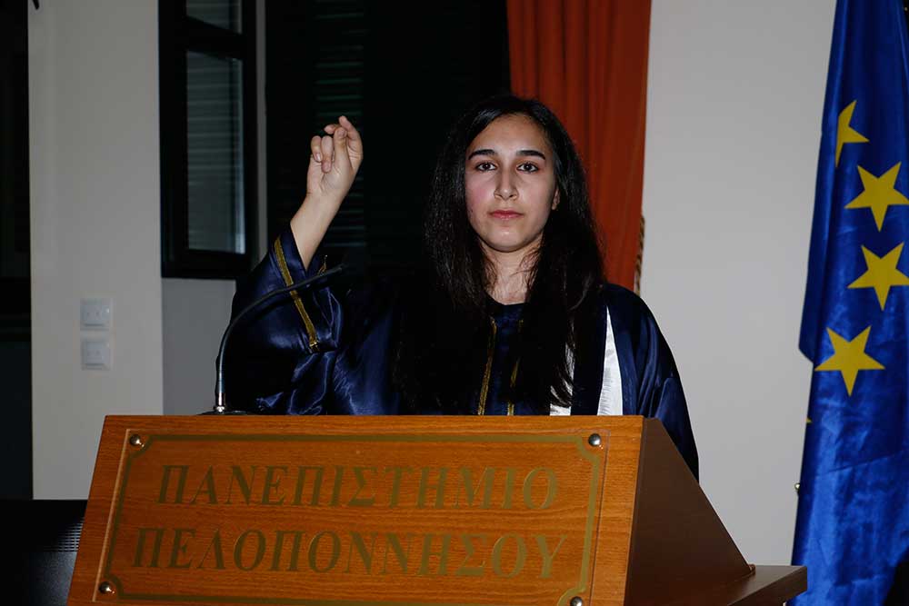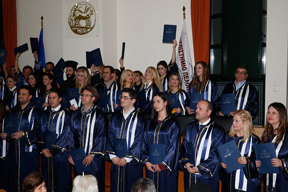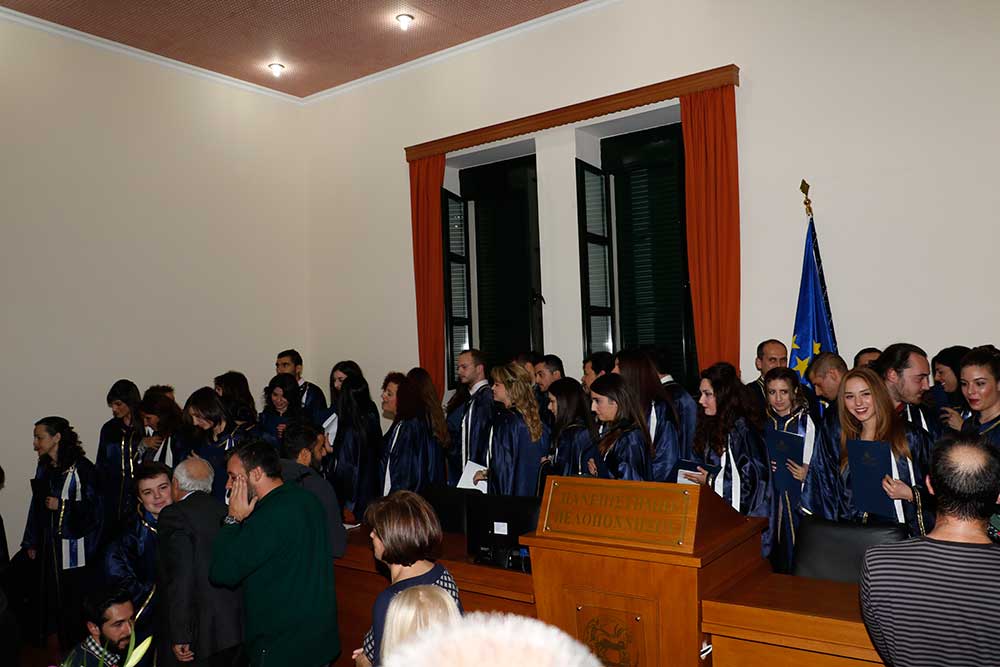 Στην τελετή που ξεκίνησε λίγο μετά τις 6 μ.μ. ορκίστηκαν οι απόφοιτοι του Πανεπιστημίου Πελοποννήσου, της Σχολής Ανθρωπιστικών Επιστημών και Πολιτισμικών Σπουδών, από το Τμήμα Φιλολογίας, το μεταπτυχιακό «Ηθική Φιλοσοφία» και το «Αρχαία και Νέα Ελληνική Φιλολογία».